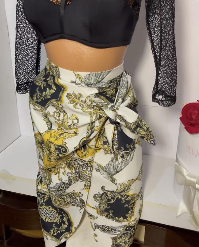 Стильная юбка карандаш с интересным принтом, создает вид будто она на запах, но это обманка, так что можно не переживать что ветер раскроет ткань) ПОТ: 32 см ПОСт: 43 см Длина: 79 см