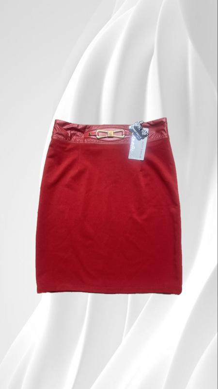 Спідниця олівець в насичено червоному кольорі зі шкіряним паском. Нова. Розмір М/L ПОТалії 39 см ПОСтегон 46 см Довжина 51 см