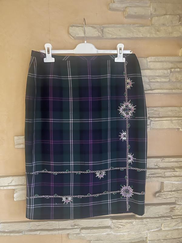 Юбка Escada в клетку, декорирована камнями. Без нюансов и дефектов, в идеальном состоянии. Бирка срезана. Размер 38. Длина 60см, ОТ 39, ОБ 47. Вовняна.