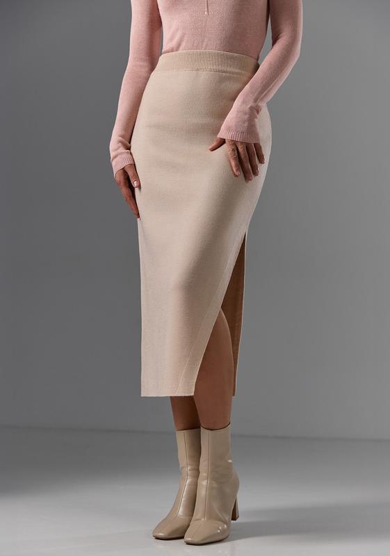Юбка вязанная трикотажная с разрезом жемчужного цвета. модель 2435 trikobakh