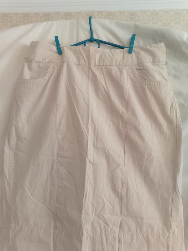 Юбка бежевая, спортивного стиля, материал напоминает плащевку с добавлением коттона, на подкладке, длина 66, пояс 44, бедра 54 см