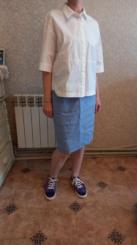 Так в хорошем состоянии, но где застежка разошлась шов, на последнем фото.Цвет лавандовый с синим оттенком.Подойдет на М.Замеры:длина 57 см, ПОТ 35 см, ПОБ 47 см.Дод.фото и замеры по запросу.