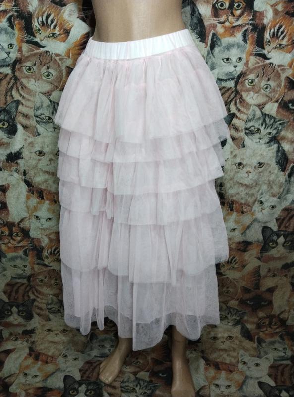 S. Длина 82 см, полуобхват пояса 33-39 см, бёдер до 56 см. Фатин слоями нашит на нейлоне. Состояние 5.