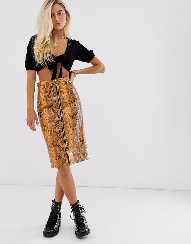 Желтая, горчичная змеиный принт, питон миди юбка sacred hawk из искусственной кожи, застеж...