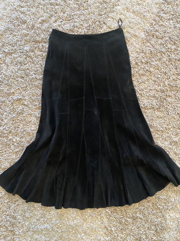 Натуральный замша , на хлопковом подкладе. Фасон годе. Красиво фалдится. Замеры/ пот-41, поб-57, длина-98.