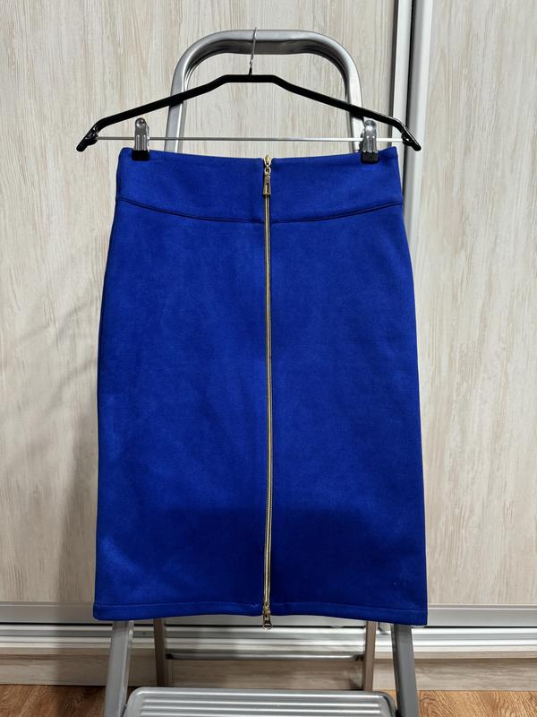 Очень красивая на высокой посадке юбка Плотный качественный замш, производство Турция Нова, можно носить замочком спереди или сзади, как больше нравится Размер 44 М За счет широкого пояса делает красивую талию Насыщенный синий цвет