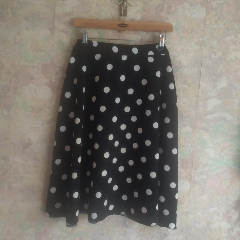 Юбочка миди в горошек в отличном состоянии. Ткань приятная, не тянется. Длина -63см, пот-44см, поб-свободно. Полиэстер. Отправка после оплаты на карту