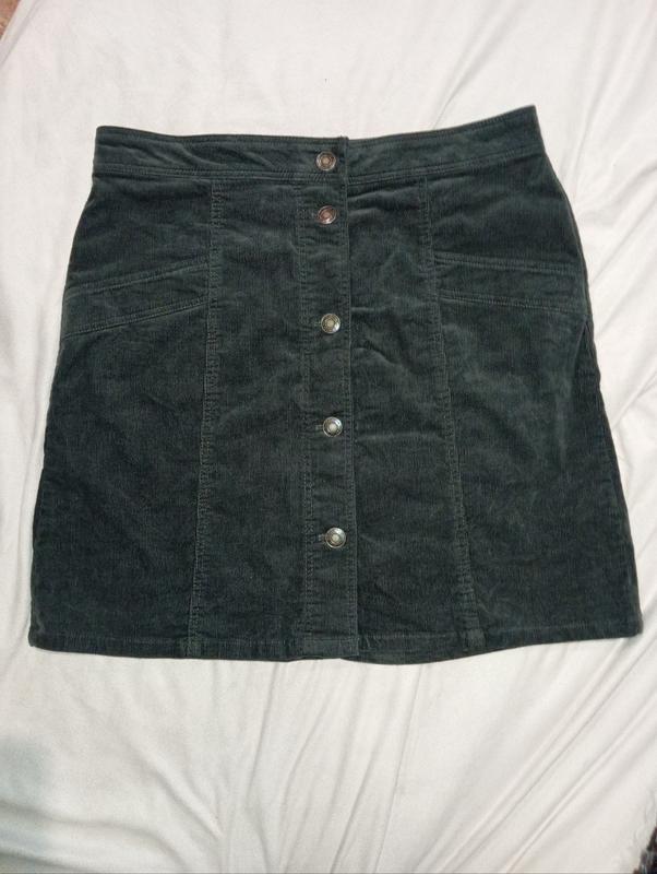 микровельветовая юбка актуального цвета мха на пуговицах, новая, бирка звездная