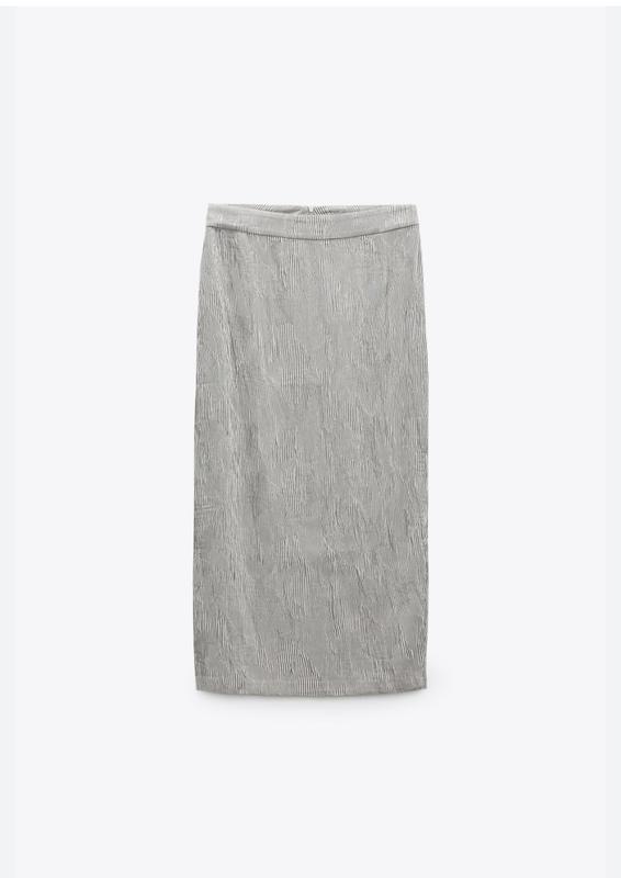 Юбка миди из жатой рельефной ткани ZARA серого цвета Стан - идеальный Седает по фигуре На блискавкці Тканина тягнеться ПО талии 32 ПО стегон 47 длина 80