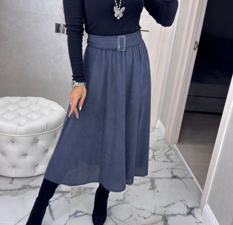 Юбка "Монро" Юбка идет в комплекте с затягивающимся поясом пряжкой. Талия на резинке. По бедрам свободного кроя, что придаст вашему образу легкости, при этом скроет все недостатки и создаст изысканный силуэт. Материал: вельвет, с объемным рисунком клетка Размеры: 42- 44, 46 -48, 50- 52, 54 -56 Цвета: фрез, шоколад, черный, джинс, графит