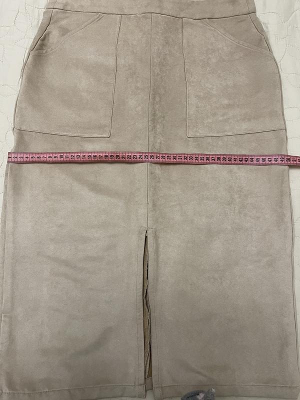Стильная юбка с высокой посадкой. Спереди два больших кармана и распорка. Ткань чуточку тянется. Замеры на фото