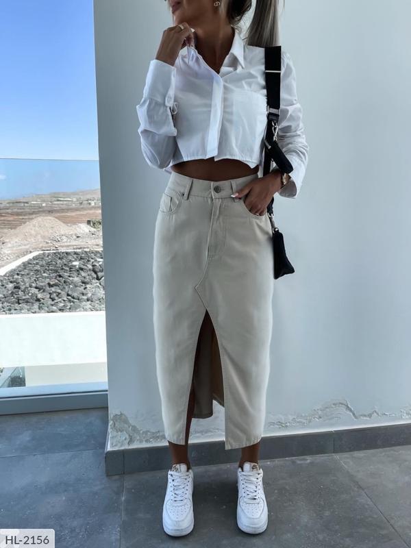 Спідниця HL-2156 модель 852vl Розмiри: 50-52, 54-56, 58-60 Кольори: білий, чорний, світлий беж тканина: джинс-коттон Спідниця нижче колін, з боків кишені, пояс на застібці + гудзик, з переду фігурний розріз, є бретельки під поясок Параметри моделі-норми 95-65-95, зріст 170см, на ній 42-44, параметри моделі- батал 108-86-110, зріст 165см, на ній 50-52 Параметри виробу по зовнішньому шву: 50-52: от84, ос108, Довжина 89, розріз 47см, 54-56: от92, ос118, довжина 89см, розріз 47см