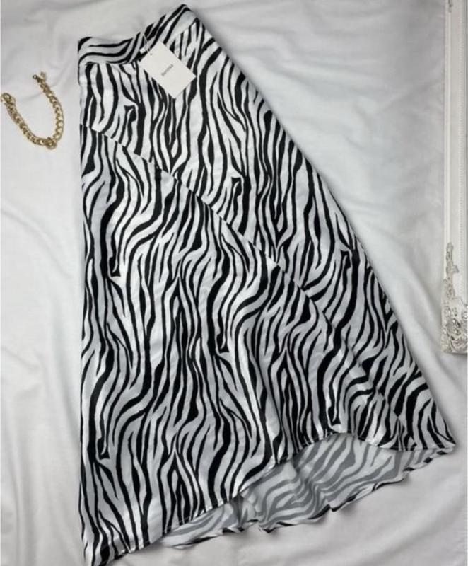 Спідниця міді довга принт зебра тваринний ассиметрична сатинова атлас
