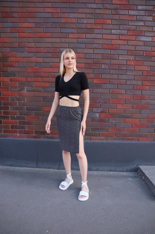 Матеріал: софт - Пояс на резинці - Приємний на дотик матеріал - Довжина Міді - Елегантний розріз на ніжці Розмір S Ширина пояса 31-40 см Обхват стегон 92 см Довжина 55 см Розмір M Ширина пояса 33-44 см Обхват стегон 96 см Довжина 57 см Розмір L Ширина пояса 35-46 см Обхват стегон 100 см Довжина 59 см Розмір XL Ширина пояса 37-48 см Обхват стегон 104 см Довжина 61 см