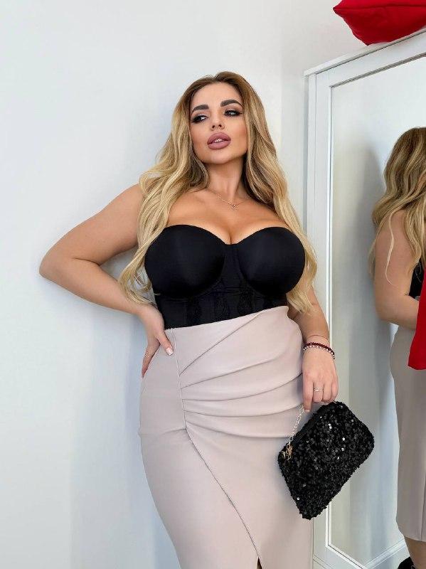 Спідниця-міді жіноча зі штучної шкіри, модна облягаюча спідниця. Трендові кольори. Універсальна річ в гардеробі. Розмір:48-50,52-54,56-58 Колір:чорний,хакі,пудра Тканина:єко шкіра начос . Заміри 48-50 О.Т-75(сзаду резинка., О.Б-100.,довжина-80 52-54 О.Т-85.,О.Б-110.,довжина-80 56-58 О.Т-95. О.Б-118.,довжина-80