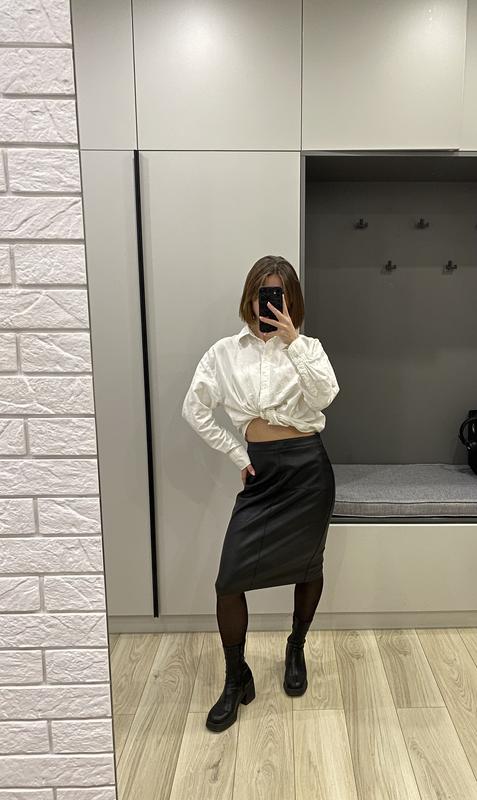 Юбка из эко кожи Средняя длина, я носила как на пониженной талии Носила 2-3 рази Параметры: Длина 60 см ОТ: 70 см ОБ: 92 см По дополнительной информации или фото пишите в личные