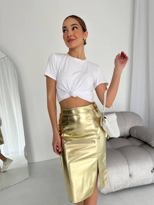 #женовремя Юбка ▪️Спилница ▪️Артикул: G767/0115 ▪️Розмiр: 42-44, 46-48, 50-52 ▪️Ткань: эко кожа ▪️Цвет: серебро, золото