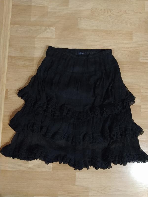 стильная юбка, новая без бумажной бирки, трендовый бренд, 100% шелк, красивый фасон с воланами, военная свободной в поясе резинке, известен качественный бренд, производитель Италия, размер M; другие известные товары бренды просматривайтесь на моей странице