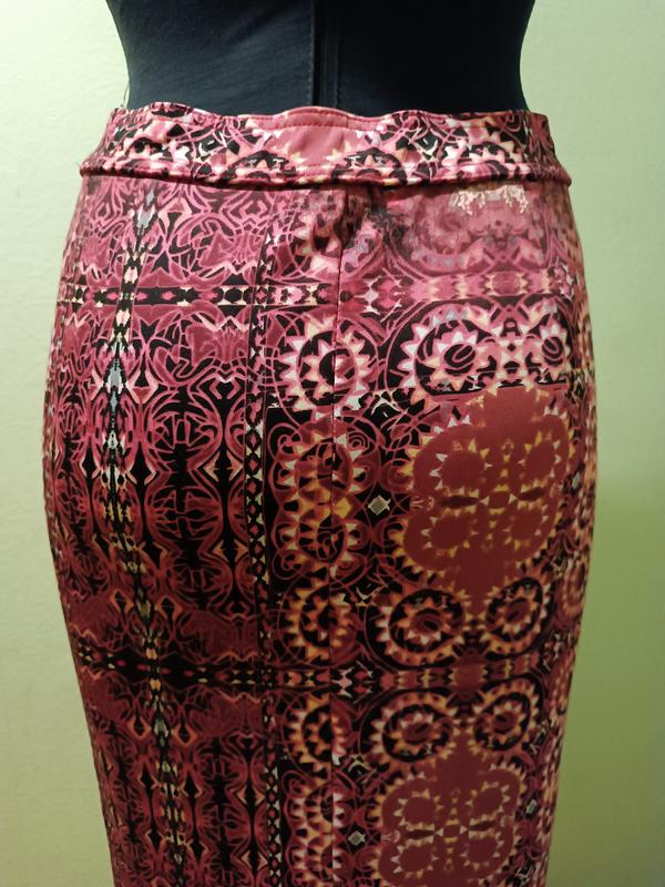 Розовая юбка, в интересный принт, без распорки. Ткань плотная но тянется там полиэстер +эластан, ткань резинка, состояние идеально. Талия-34 до 38 бежевое-44 до 48 длина 61. размер с/М.
