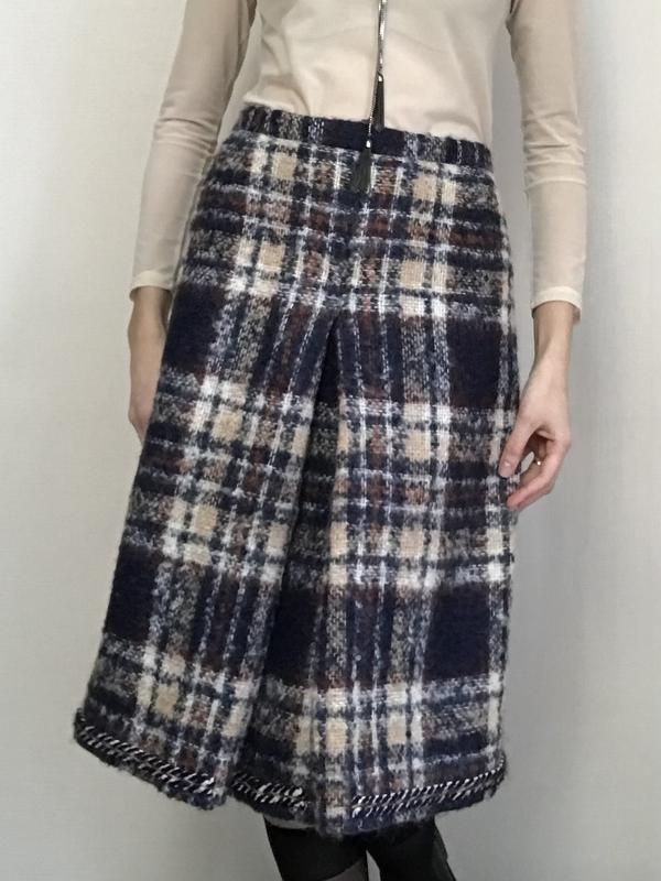 Юбка из шерсти теплая юбка на зиму осень классика в клетку юбка миди