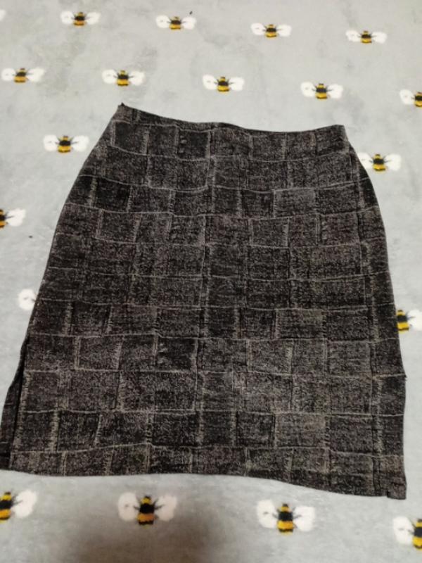 Юбка с геометрическим принтом.Размер 44, можно и на небольшой 46. Ориентируйтесь на замеры. Длина 49-50 см,пояс 35 см, бедра 46 см.по бокам есть разрезы.Стан хорош, но ношения интенсивно, тем не менее, заметны следы ношения.Все нюансы на фото. Застежка молния рабочая.Также является пришитым крючок.Плям и дырок не имеет.Рокупку делайте обмеркнутое.Дополнительные Фото и замеры при необходимостидам.