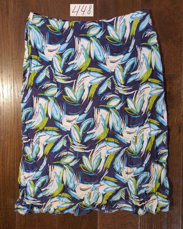 легкая вискозная юбка красиво сидит по фигуре длина 69см, тянется до 85см полуобъем талии 44см, тянется 59см полуобъем бедер 50см, тянется до 81см полуобъем по низу 61см, тянется до 71см