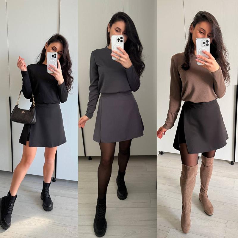 🩶Базовый Лонгслив Тканина: трикотаж Рубчик Цвет: черный, графит, бежевый Размер:42-44, 46-48, 50-52 Цена : 475 грн Шорты-юбка - идеальное сочетание современного стиля и практичности! Материал: Турецкая костюмная ткань Особенности: изящный дизайн со стильным асимметричным верхом и комфортом шорт. Размеры: 42-44, 46-48, 50-52 Цвет: серый, черный Цена: 545 грн