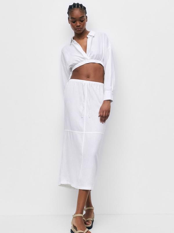 Стан ідеальний Колір білий, на фото вийшла трохи жовтувата Розмір - М Півоб талії 36см (тягнеться до 55см), стегон 52см. Довжина 87см