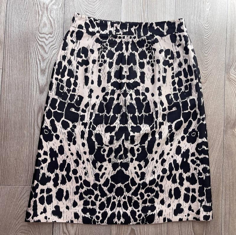 Юбка женская в бежево-черный принт с шелком TM L.K. Bennett🛍️❤️🔥 Размер - UK 8/ EUR 36/ USA 4/S/ 42-44. Состав: 55% хлопок, 45% шелк. Подкладка: 100% полиэстер. Производитель Китай. Юбка - карандаш из натуральной хлопковой ткани с добавлением натурального шелка. Сзади застежка на молнию, с подкладкой. Боковые карманы с косыми срезами. Дополнительные замеры: полная длина 61 см (из них пояс 4 см), полуобхват пояса 35 см (полный обхват 70 см), полуобхват бедер 47 см (полный обхват 94 см).