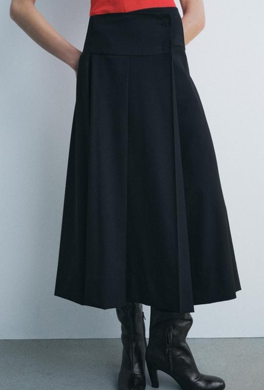 Юбка миди со средней посадкой, выполненная из пряжи на 21% из шерсти. Подол с плиссированной отделкой. Скрытая застежка-молния в шве. 54% полиэстер 21% шерсть 21% вискозы 4% эластана На бирке указан размер S. Обязательно ориентируйтесь только на замеры! Длина 85 см, Талия 40 см