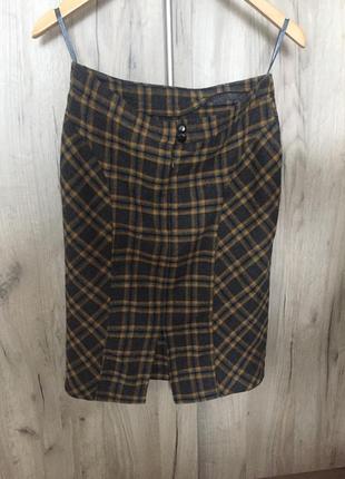 Стильная клетчатая юбка карандаш. Теплая . Размер С
