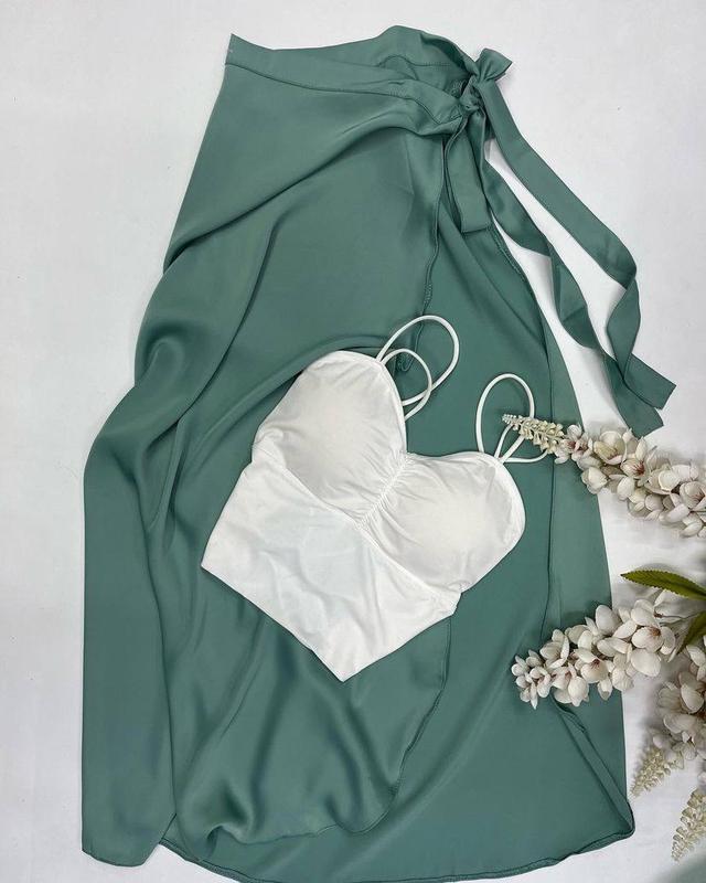 Невероятно крутая, легкая юбка на запах арт. wa. 102 Тканина: шовк Размер: 42-46 универсальный Цвет: свет бежевый, красный, черный, изумруд, морская волна, белый, шоколад, масло, серый Юбка одевается на запах и канатиками регулируется на талии