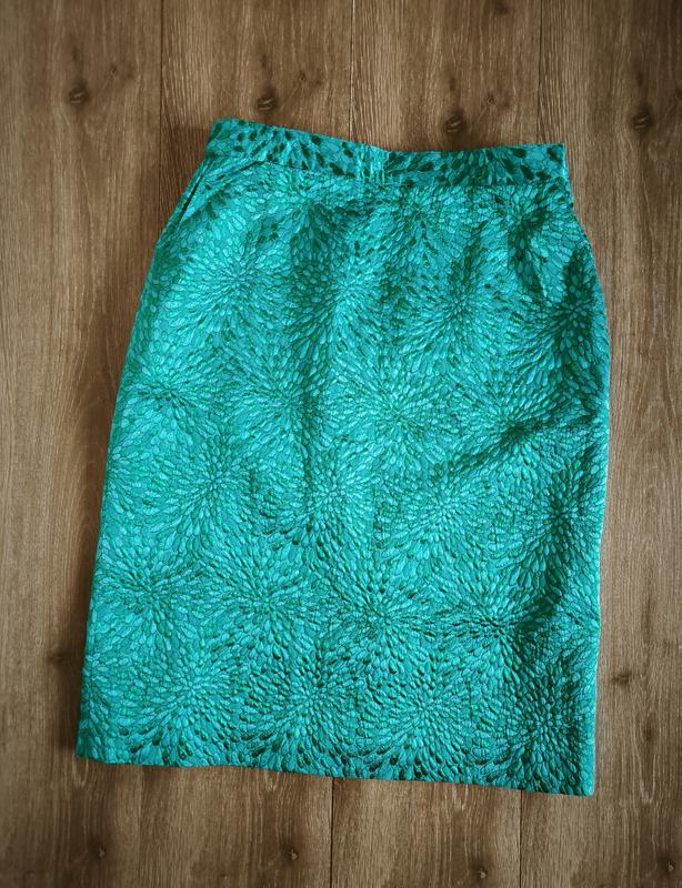 Юбка миди бирюзовая с люриксовой ниткой,рисунок фактурный.На подкладке,по бокам карманы.