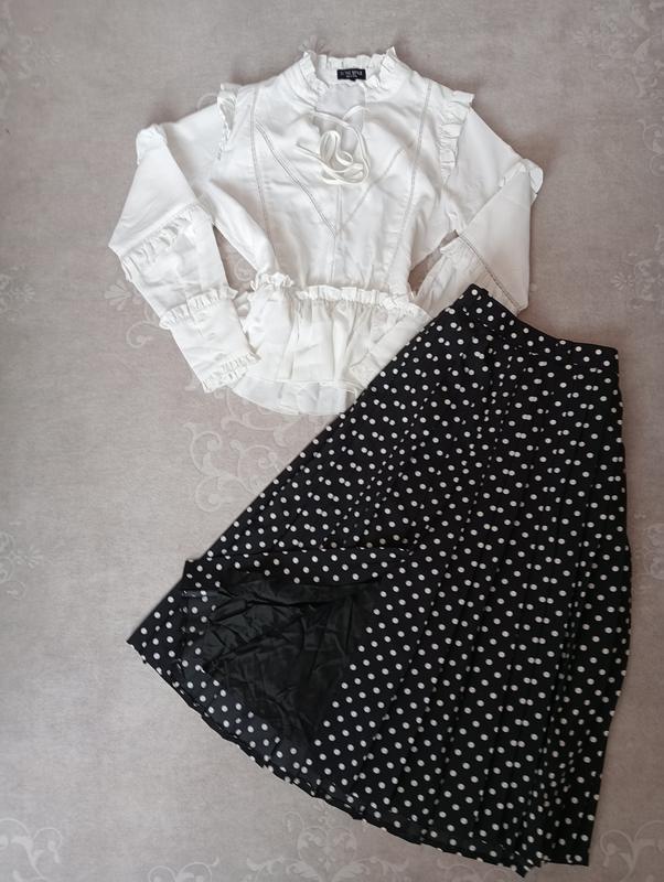 Продам юбочку миди в горошек с распоркой по переду. юбочка с высокой посадкой.Очень красиво выполнена в складочке.