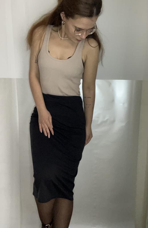 Идеальная юбка миди, которая подчеркнет фигуру. Цупкий трикотаж, не кошлатиться. На талии резинка. Длина 76, бедра 45. Хорошо тянется