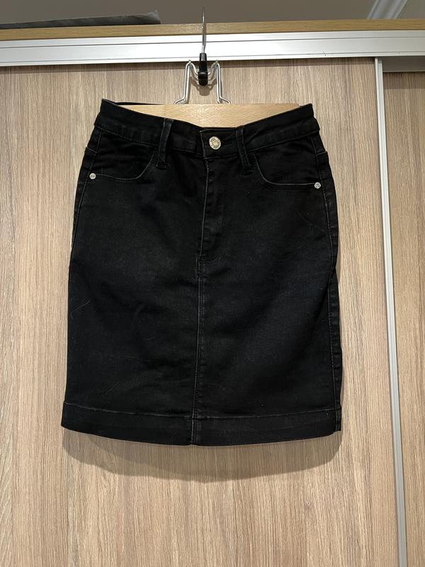 Жіноча чорна спідниця-олівець, джинсова. З кишенями спереду.