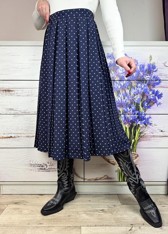 Стильна плісірована міді в горох 💙🤍 застібка ззаду : блискавка , ґудзик і гачок , без підкладки Обміну та повернення немає !!! Будь-ласка уважно порівнюйте заміри та опис ! Діє акція 1+1=3 💖фірма: St.Michael 💖розмір: uk 12 eu 40 , але краще сяде на S або М вузьку талію ( див.заміри ) 💖склад: 100% поліестер 💖стан дуже хороший , є міні нюансики 💖напівобхват пояса: 34,5 см(максимально внатяжку 35,2 см) 💖Напівобхват стегон: вільно 57 см , можна й на більше 💖довжина: 77,5 см На фото одягнено на параметри: Обʼєм грудей 90 см;Обʼєм талії 72 см; Обʼєм стегон 99 см. Зріст 1,66 м( зазвичай ношу розмір повномірна S / маленька М )