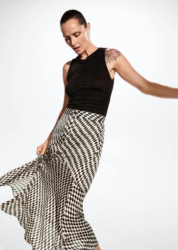 Очень стильная юбка Манг0. Так красиво смотрится! Зручна. Классная длина. Размер XS. Ткань полиэстер. Длина 92см,Пот 32см. .