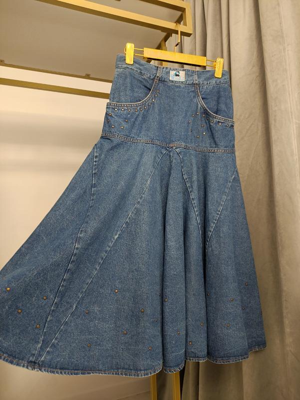 Эксклюзив! Винтаж! Джинсовая юбка гостэ солнце-клеш, длина миди, на низкий рост почти макси. Италия. Состояние очень хорошее! Превосходное винтажное состояние, есть неброская пятинка сзади внизу. Подойдет на С-М. Юбка пышная, использована очень много ткани. Выглядит невероятно эффектно, дорого и стильно! Отпрашиваю НП после оплаты на карту Приватбанк, наложенным по предоплате или безопасной оплатой