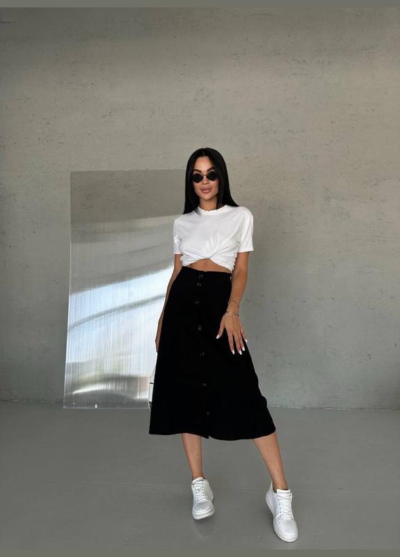Женская юбка из вельвета на пуговицах длины миди черного цвета, новая. Размер 52/54, ОТ - 86-94 см, ОБ - 112-120 см.