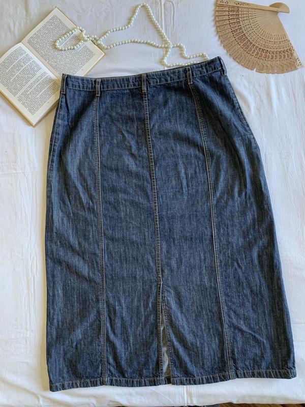 Трендовая темно-синяя джинсовая длинная юбка в винтажном стиле. Из тонкого натурального хлопка. Застегивается спереди на молнию. Ззаду шлица. Приятная и удобная.(Следи носки) Размер 18/46 П. о. стегон 62 П. о. талии 47 Длина юбки 87 ● Обмену и возврат нет, перед заказом проверяйте все измерения. По запросу делаем дополнительные фото. ● Оплата на картку Приватбанку 100% суми. После платья нет. С Безопасной оплатой НЕ РАБОТАЕМ. ● Открытка Новой или Укр-почтой.
