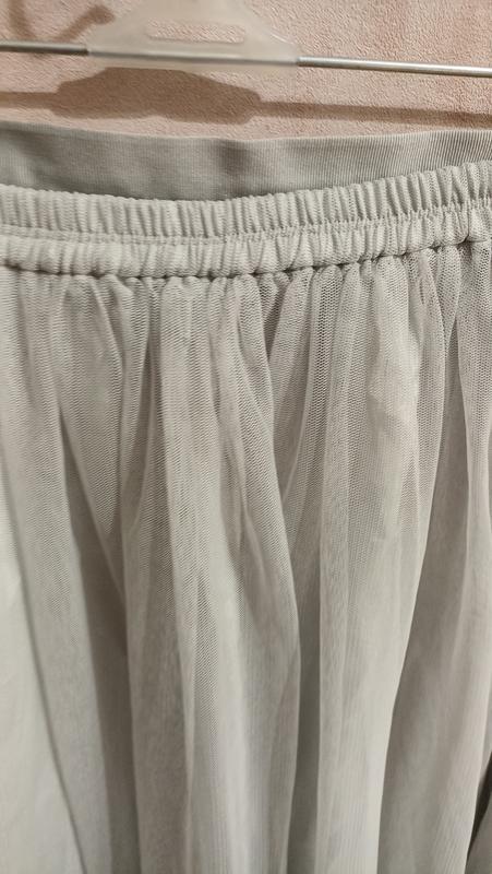 Легкая юбка светло серого цвета. Пояс сзади на резинке. Длина -67см, Талия-33/42см.