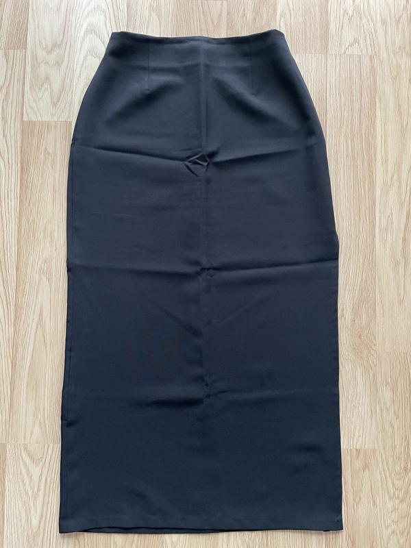 Черная приталенная юбка с размером сбоку, ткань костюмная, застежка на молнии, по талии 35 см, по бедер 50, длина 92 см