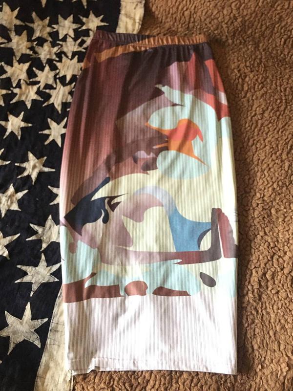 Летняя юбка из гладкого трикотажа Талия на широкой резинке Абстрактний принт Длина 80 см ПОТ 30-46 см ПОБ 46 см ПО низу 40 см