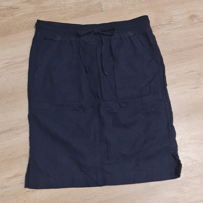 юбка льон темно синя Марк енд Спенсер с карманами, на резинке и затяжках гордит - договариваемся акция 1+1=3