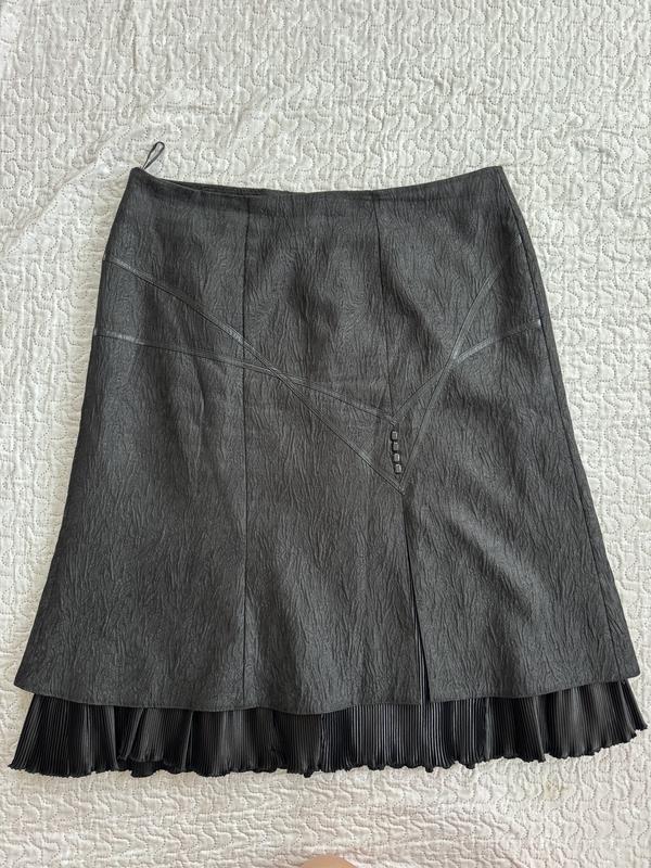 Юбка на подкладке черного цвета, по низу обработана рюшами, по бирке 56, из дефектов необходимо заменить замочек который сзади, а так-стан идеален. Замеры: на замочке - 48, бедра-60, длина-69