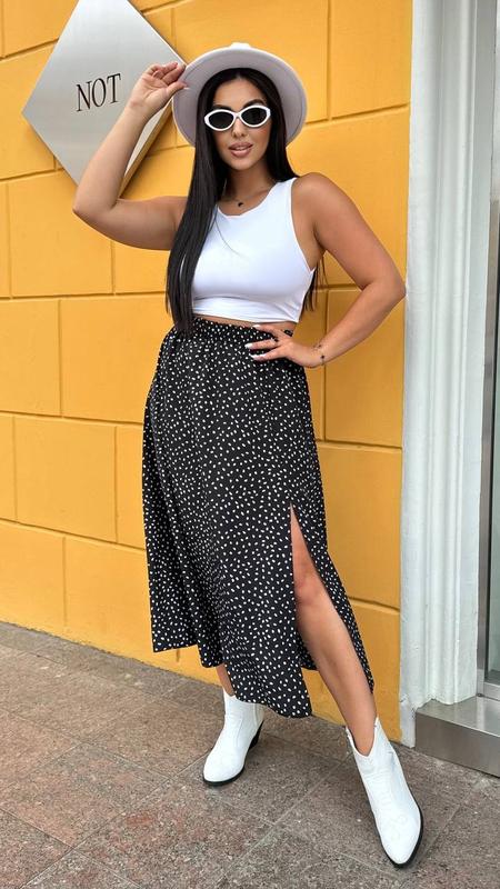 Юбка NoС818-034 Длинная легкая свободная юбка в принт. Софт: весна/лето Тканина: софт При выборе размера обязательно ориентируйтесь на замеры готового изделия. Замеры готового изделия: 48-50 ОТ 110, ОБ 140, длина - 85 см 52-54 ОТ 120, ОБ 160, длина - 85 см 56-58 ОТ 130, ОБ 180, длина - 85 см Размеры: 48-50, 52-54, 56-58 Цвет: черный