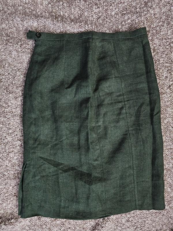 Юбка карандаш из плотного льна зеленого цвета винной бутылки