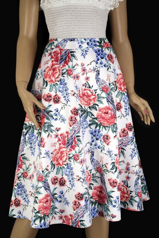 Брендовая атласная пышная юбка миди "TU" с цветочным принтом. Pазмер uk16. Застёгивается на потайную молнию, на лёгкой подкладке, с прорезными карманами по бокам. Атласная ткань средней плотности, держит формую Замеры: -ПО пояса - 44 см; -ПОБ - 73 см (юбка пышная); -длина - 71 см. Без дефектов. В идеальном состоянии!