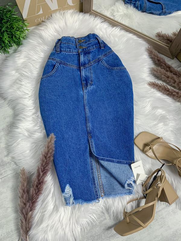 Гарна джинсова міді спідниця Сам джин тягнеться Стан ідеальний, одягала 2 рази, лежить в шафі без діла В талії позаду є резинка, тому підійде під різні обʼєми талії ▫️Розмір: 32, XXS-XS ( підійде від ххс - до невеликої с) Заміри: •талія 29-33 см •бедра 44-47